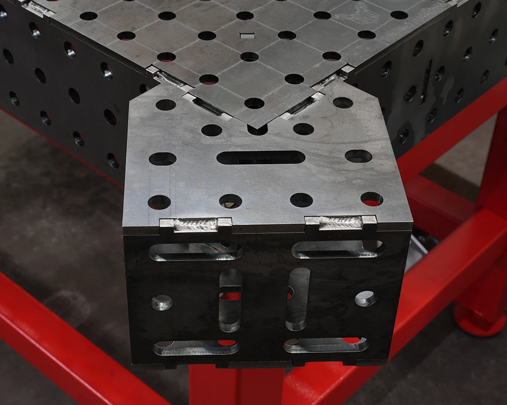 Система крепления — отверстия D16 позволяют по разному закрепить плиту к сварочному столу, в том числе вертикально под углом 90 градусов.